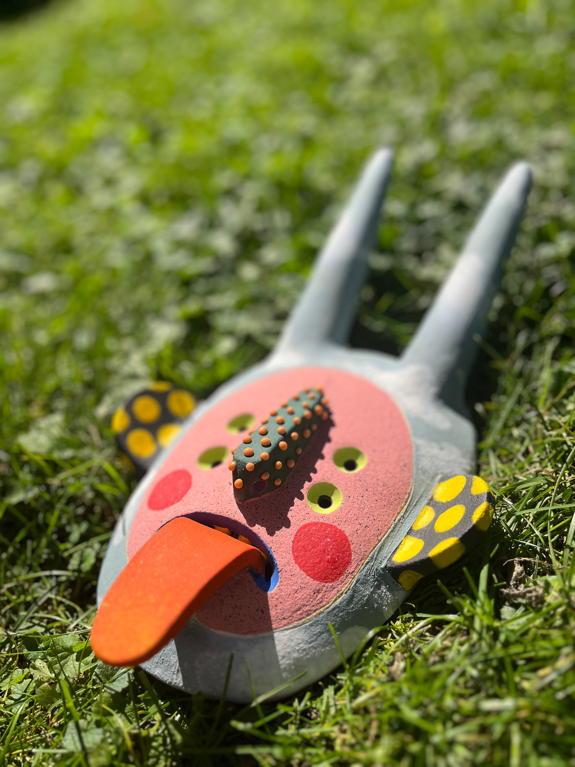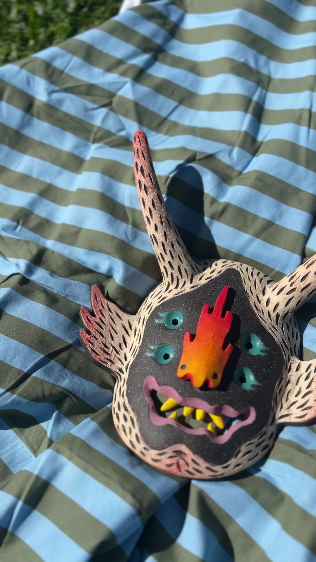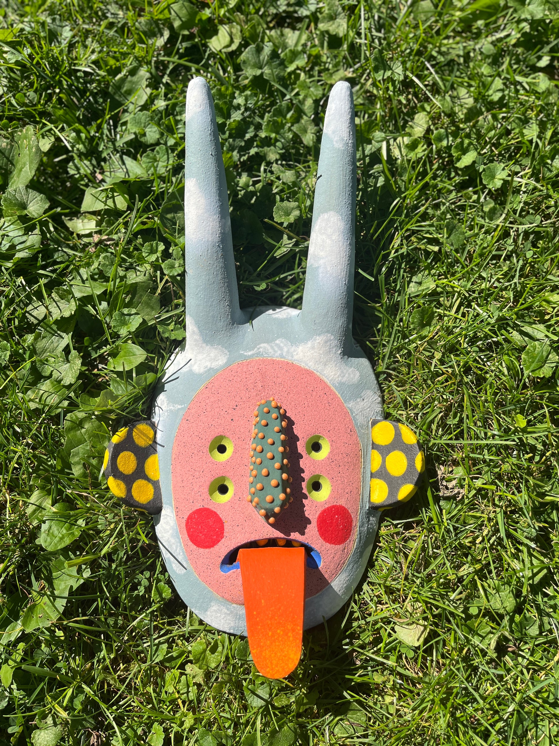 Handmade, wall-hanging, clay mask.