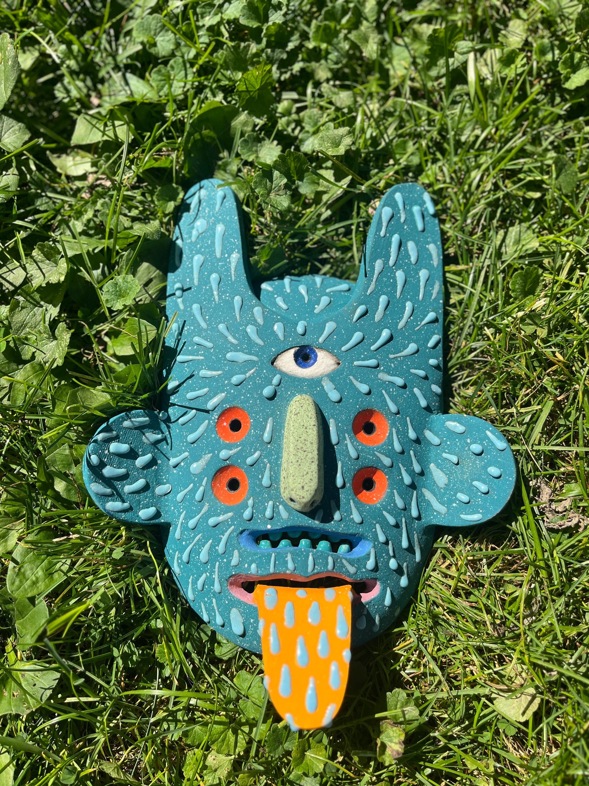 This piece will be sculpted in clay and decorated with colored slips and underglazes.